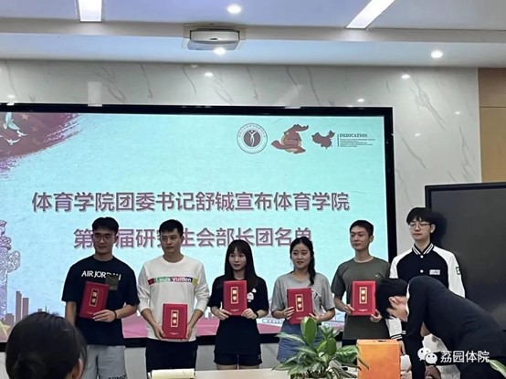同时,还宣布了国产视频 第一届研究生会的部长团名单,团委书记舒铖为吴建豪、祝港辉、陈开兴、张欣洁以及朱丽欢等五名同学颁发了国产视频 第一届研究生会的部长聘书。