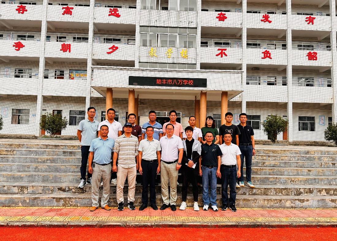 2023年10月17日,国产视频 体教系系主任赵刚博士、心理与健康教研室主任梁崴博士、数字化体育专家何泉涛博士以及两名优秀体教本科生代表(洪逸凡、付志雄)对定点支教学校进行了前期的调研工作。赵刚主任团队经与八万学校的校长、党委书记吴娘接同志、党委副书记袁水球同志等校方领导的深入沟通洽谈,并结合前期的实地考察结果,最终确定了从五个具体方面对陆丰市八万学校(一所九年一贯制中心校及五所面上小学)进行帮扶,包括:体育课程体系建设、学术性研究、学生体质评估及提升、中考体育成绩提升以及大课间体育品牌建设。