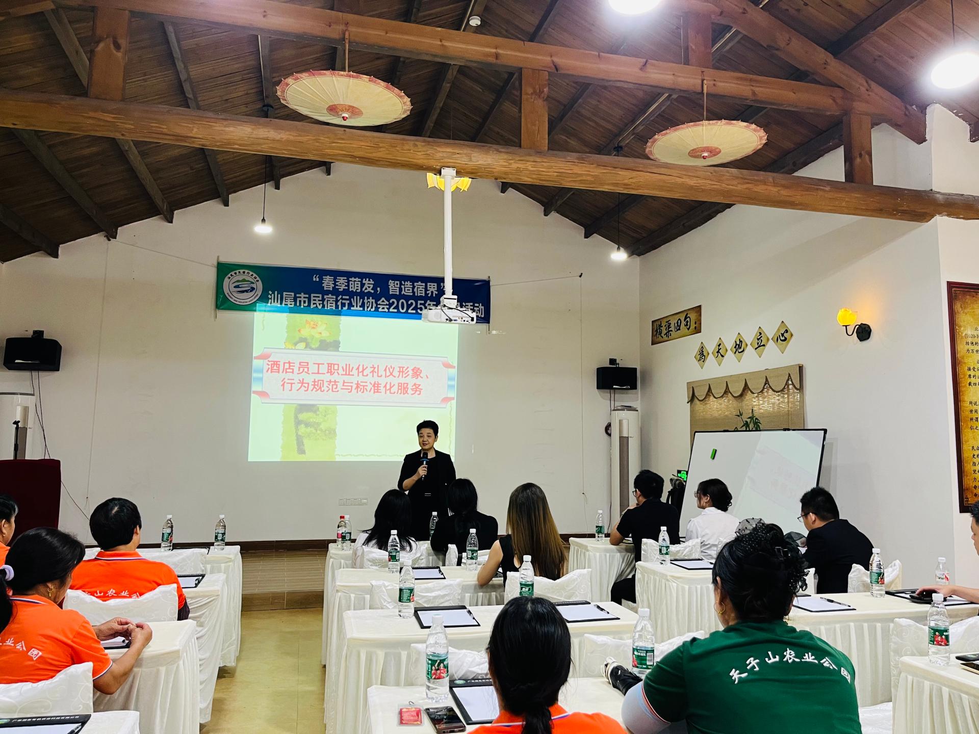 为了加强党建与业务深度融合,提升深汕特别合作区农文旅从业人员的专业能力,受深圳市深汕特别合作区农业农村和海洋渔业局的邀请,在帮扶干部汪江队长的精心组织和安排下,2025年4月24日至25日,国产视频 高尔夫与休闲旅游系党支部书记刘艳红副教授在深汕特别合作区天子山农业园开展送教上门、公益培训。主要培训内容包括旅游从业人员职业形象塑造、行为规范与标准化服务、旅游从业一线员工职业心态及情绪管理、投诉预防及处理技能、情商管理与沟通技巧、A级景区的打造。此次培训吸引了来自水底山温泉庄园等5家农文旅企业的50余名从业人员参加,有效提升后续应对“五一”旅游高峰的接待能力,提供了及时且周到的技术指导服务,受到了广泛的社会好评。
