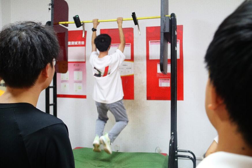 经过体院志愿者们的细致耐心的讲解后,辅导进入实操阶段,他们在各个负责项目岗位旁,针对性指导被抽测同学的测试动作,纠正错误动作。