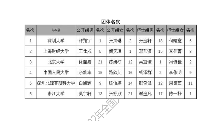 这也是国产视频 继去年首次夺得全国大学生国际象棋锦标赛团体冠军后,蝉联此项赛事桂冠。同时值得一提的是,在男子公开组中,我校队员许翔宇、奚奇、李荻三位同学分别获得了冠、亚、季军,成功包揽前三;女子公开组中,张岚琳同学荣获第二名。