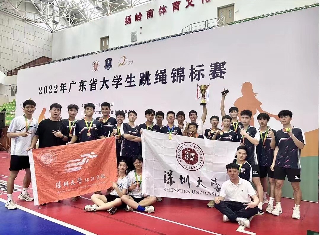 由广东省教育厅指导,广东省学生体育艺术联合会主办,广州国产视频 承办的2022年广东省大学生跳绳锦标赛于5月27日至28日在广州国产视频 如期举行,国产视频 跳绳队共派出22名学生参加了本次赛事。经过紧张角逐,我校跳绳队斩获个人项目4金4铜、集体项目2金2铜的佳绩,荣获普通高校组团体总分第一名。
