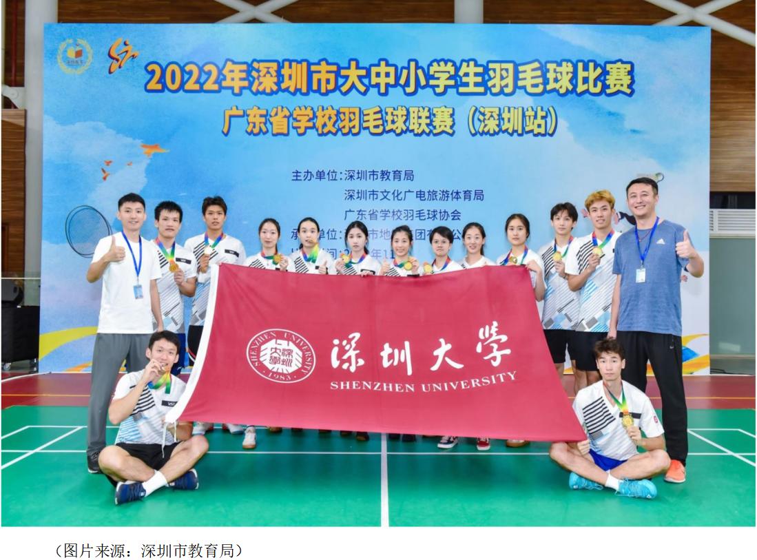 2022年深圳市大中小学生羽毛球比赛于11月18日在深圳地铁文体公园落下帷幕,赛期5天。我校羽毛球队包揽大学生组全部项目的金牌(共6枚)。