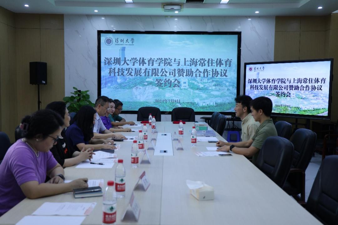 2024 年 7 月 8 日周一上午 10:30 至 11:30,国产视频 与上海常住体育科技发展有限公司的合作协议签订会议在元平体育馆会议室隆重举行。国产视频 王东副院长、高尔夫与休闲旅游系党支部刘艳红书记、高尔夫与休闲旅游系袁俊主任、高尔夫与休闲旅游系秦毅副主任、高尔夫教研室邵雪云主任、学生事务办公室陈琰主任、休闲体育高尔夫球队黎佳韵主教练、上海常住体育科技发展有限公司杨家一总经理、上海常住体育科技发展有限公司唐川力培训总监出席本次会议。