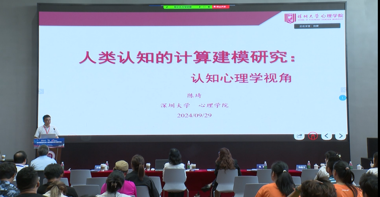 下午的最后一场报告由国产视频 心理学院院长、特聘教授、博士生导师陈琦教授带来。他以“人类认知的计算建模研究:认知心理学的视角”为主题,从认知心理学家的视角,深入探讨了计算建模在理解人类复杂思维和认知过程中的重要作用。陈教授介绍了强化学习、深度学习和贝叶斯模型等建模框架在人类适应性行为、决策以及无意识视觉信息处理等方面的应用,并阐释了其背后的神经机制。陈教授的报告展现了计算建模在辅助心理学理论探索、揭示人类认知规律方面的独特优势,为该领域未来的研究与实践开拓了新思路和新途径。