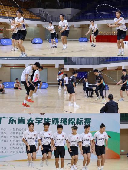 由广东省教育厅指导、广东省学生体育艺术联合会主办、广东工程职业技术学院承办、广东省学生体育艺术联合会跳绳分会以及广州市腾翔体育活动策划有限公司协办的2024年广东省大学生跳绳锦标赛于11月8日至10日在广东工程职业技术学院(清远校区)体育馆举行。