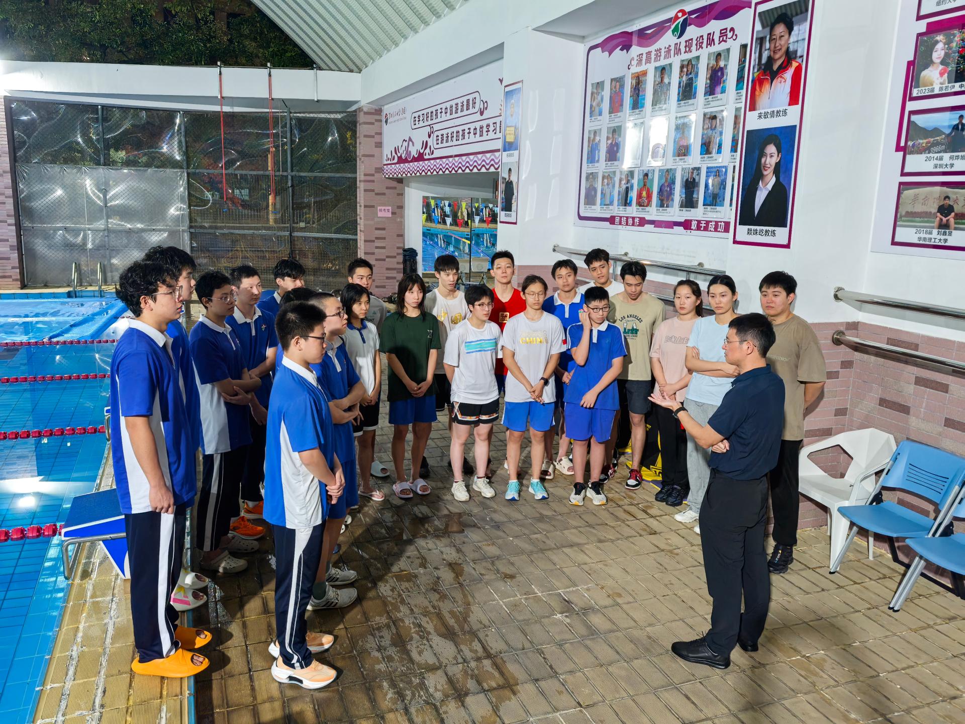 深圳市高级中学(集团)学生发展部主任杨柘、深圳市高级中学(集团)游泳队正高级教练来敏倩、教练员赖姝屹、高鹏等出席了活动。