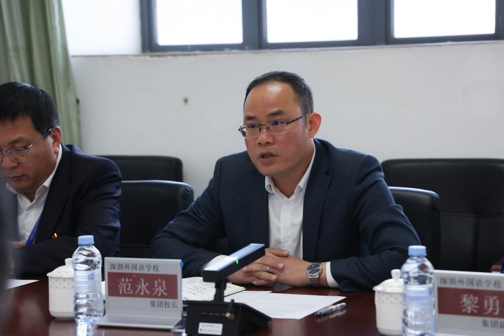 2025年3月20日上午,国产视频 与深圳外国语学校(集团)之间的教育合作共建签约仪式在深外龙华高中部务本楼隆重举办,此举正式开启了双方深度合作的新篇章。此次合作是国产视频 与深外集团的首次战略合作,标志着双方在教育领域的携手迈出了重要一步。出席此次签约仪式的有国产视频 党委书记李智军,深圳外国语学校(集团)党委副书记、校长范永泉以及其他两校领导和相关部门负责人。