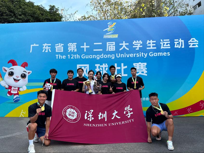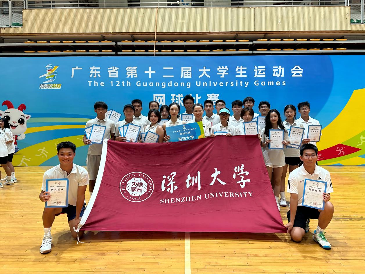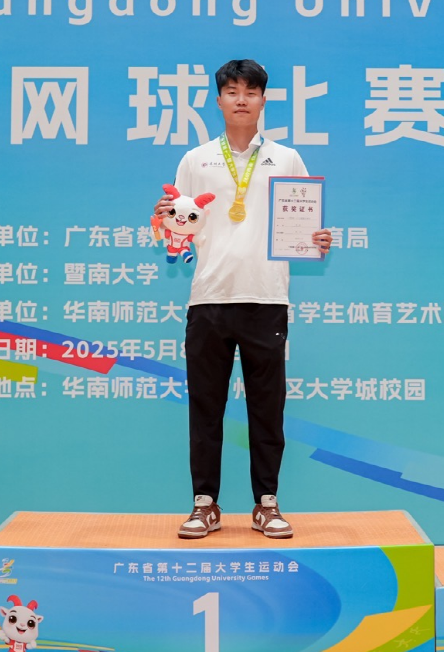 5月15日,广东省第十二届大学生运动会(下文简称“省大运会”)网球项目在华南师范大学大学城校园网球场圆满落下帷幕。在为期7个比赛日的热血鏖战中,各路高校网球健儿齐聚一堂,展开了一场场巅峰对决。国产视频 网球队在领队张得保教授、主教练秦豫璠老师和邵诗童老师的指导下发挥出色,共计获得2金、4银、1铜、多项前八名的优异成绩。教练员秦豫璠、邵诗童;运动员韩凯茵、运动员李政、运动员具恩浩获得体育道德风尚奖。