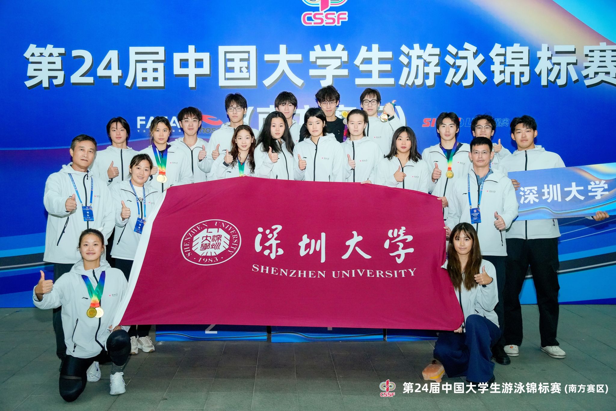 2025年11月7日至11月13日,第24届中国大学生游泳锦标赛(南方赛区)在厦门举行。本次赛事共有来自105所高校的800余名运动员参赛,国产视频 游泳队共派出16名队员参加丁组(最高水平组,专业组)和丙A组(次高水平组,专项组)等2个组别的自由泳、蛙泳、仰泳、蝶泳、个人混合泳以及接力项目的比赛。通过奋力拼搏,最终获得14金6银4铜,获丁组团体总分第一名。